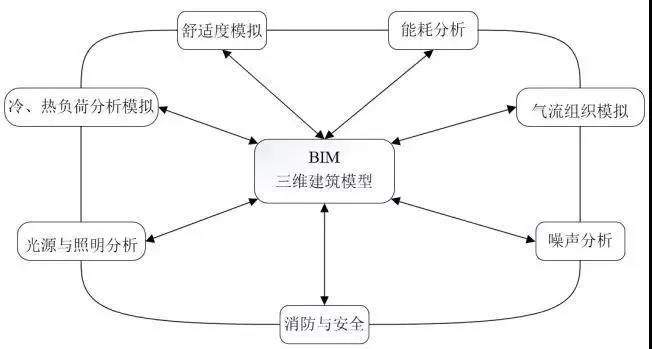 BIM貫穿于整個項目建設周期,裝配式建筑即包括設計、生產、建造、運營維護的全生命過程。裝配式建筑綠色化的過程需要一個技術平臺來完成方案設計,諸如建筑抗震分析、建筑性能分析、建筑能耗分析、可視度分析、疏散分析以及舒適度分析等。BIM可搭建平臺,將三維建筑模型導入綠色建筑設計分析軟件,模擬計算日照、自然采光與通風、噪聲防治、室內溫濕度等(如圖 1所示),促進實現裝配式建筑的綠色化。