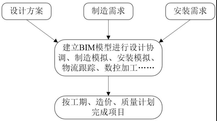 如何整合出完整的裝配式建筑產業鏈是推動智慧建造過程中一道難題。目前,在建筑行業中已有一些較成熟的BIM協同管理軟件,諸如,廣聯達BIM5D和ITWO5D。在預制構件生產前,引入BIM技術,綜合考慮設計、制作、安裝的需求,通過BIM模型提前虛擬施工實際制作安裝過程,包括設計協調、制作過程模擬、安裝施工模擬等,發現所有可能出現的問題,并依次提前解決。實際生產安裝時,結合互聯網、數控機床等技術和設備,信息跟蹤和自動化生產制作安裝過程,提高構件制作、裝配施工的精確度,其基本流程如圖 3所示。