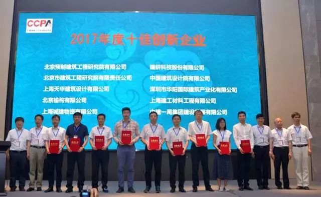 2017年預制混凝土行業十佳創新企業:北京預制建筑工程研究院有限公司、建研科技股份有限公司、北京市建筑工程研究院有限責任公司、中國建筑設計院有限公司、上海天華建筑設計有限公司、深圳市華陽國際工程設計股份有限公司、北京榆構有限公司、上海建工材料工程有限公司、上海城建物資有限公司、中建一局集團建設發展有限公司。