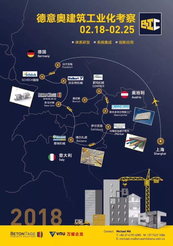 為加強(qiáng)與全球建筑工業(yè)化強(qiáng)國的協(xié)作交流與溝通,更好的滿足國內(nèi)現(xiàn)階段建筑工業(yè)化行業(yè)發(fā)展需求,拓展國內(nèi)建設(shè)集團(tuán)、設(shè)計(jì)院等相關(guān)主導(dǎo)企業(yè)視野, 學(xué)習(xí)和借鑒國外最具代表性的工業(yè)化建筑設(shè)計(jì)、先進(jìn)的產(chǎn)品制造技術(shù)、完善的項(xiàng)目、管理模式,透視歐洲領(lǐng)先企業(yè)的發(fā)展軌跡,預(yù)見未來中國企業(yè)在建筑工業(yè)化領(lǐng)域的發(fā)展之路,上海萬耀企龍展覽有限公司攜手FBF混凝土服務(wù)有限公司(德國BetonTage主辦方)精心打造“2018德意奧建筑工業(yè)化考察”,學(xué)習(xí)歐洲先進(jìn)裝配式建筑的成功案例,同時,為切實(shí)提高和完善國內(nèi)建筑工業(yè)化發(fā)展、工廠制造技術(shù)應(yīng)用、專業(yè)人員工作水平、項(xiàng)目管理創(chuàng)新模式開展一次專業(yè)和高效的國際考察之旅。