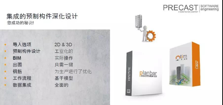 PRECAST是內梅切克集團的一款核心軟件技術,是專門用于預制混凝土行業的中央控制系統。內梅切克的核心是一個開放的的系統平臺,通過旗下兩款核心產品PLANBAR、TIM,實現AEC工業(建筑、過程和施工行業)整個過程的3D可視化。