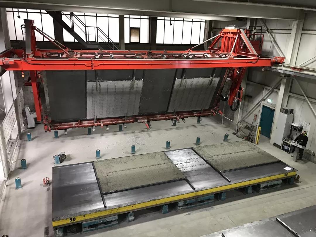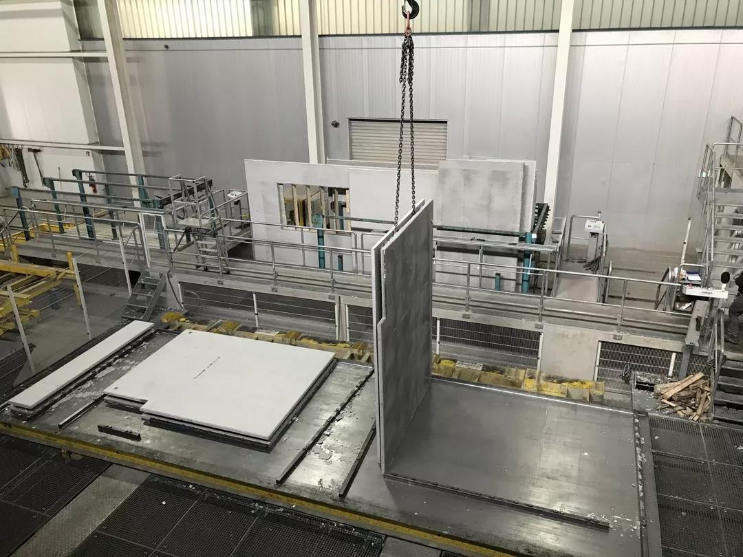 INNBAU工廠是一家多層預制工廠,6個工人8個模臺日產1000㎡,合理規劃廠區布局實現了半自動化的高效生產。其生產的預制樓板和雙面墻在德國市場占有很高份額。目前在中國市場已有成功的項目。
