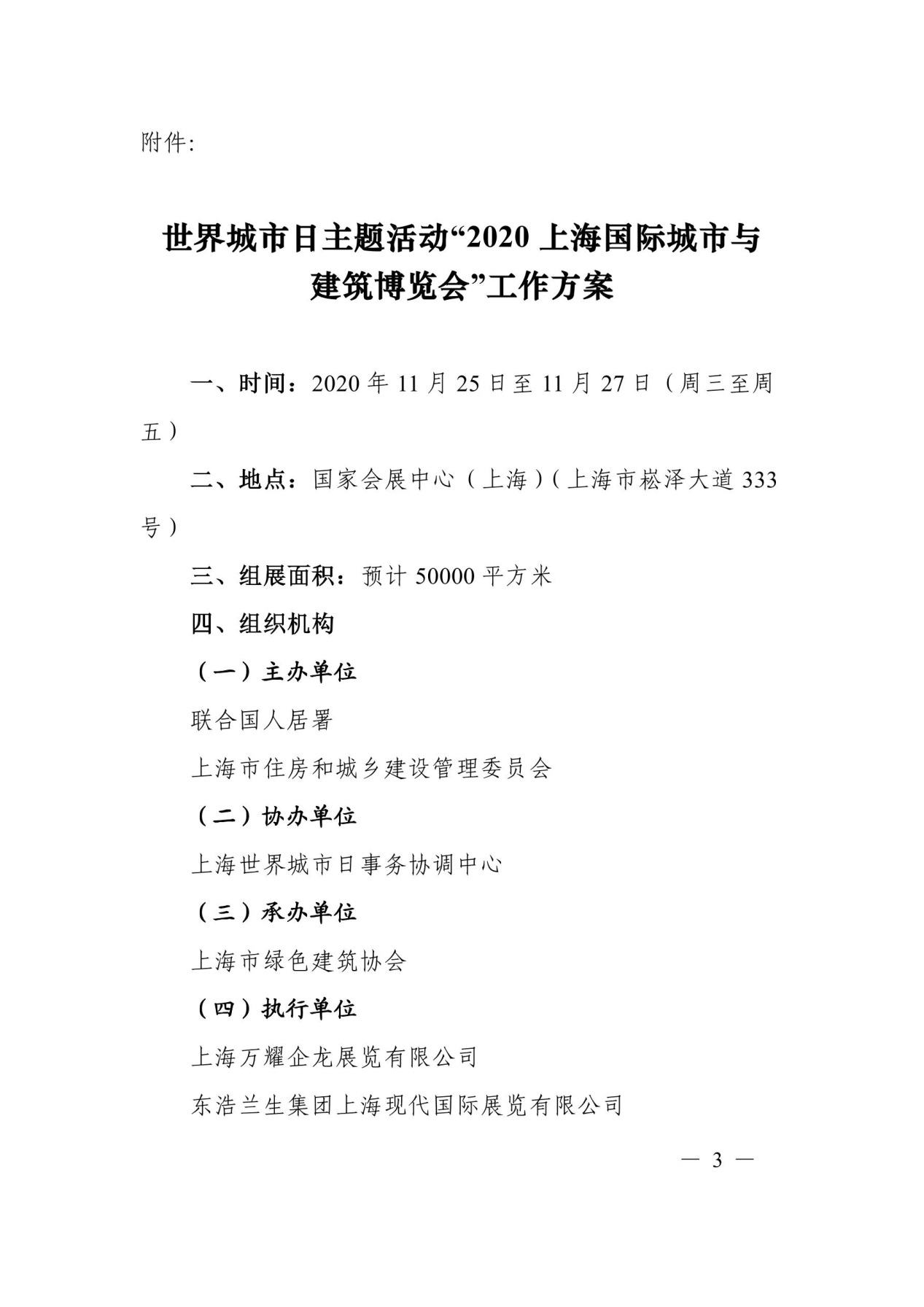 “2020上海國際城市與建筑博覽會”工作方案的通知,附紅頭文件如下: