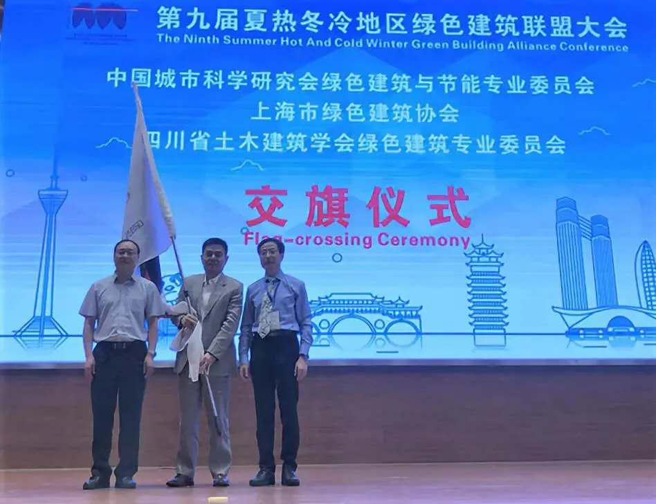 歷經(jīng)多個城市的巡回,2020年“第十屆夏熱冬冷地區(qū)綠色建筑聯(lián)盟大會”將在上海舉辦,在交旗儀式環(huán)節(jié),上海市綠色建筑協(xié)會甘忠澤會長接過了大會旗幟。