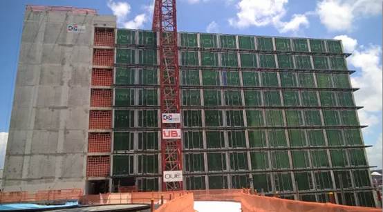 在PPVC建筑方法下,新擴建的酒店大樓每個單位內的天花板、櫥柜、浴室、浴缸、地磚等都在工廠預先造好,整個工廠單元模塊建造大概花費了4個月左右的時間,然后用時一個月運抵現場。在施工現場僅僅用了26天就吊裝完成了一棟10層的五星級酒店。由于大部分工程只需現場組裝完成,在一定程度上就減少了工地上的塵埃、噪音和對周圍環境的污染及負面影響。