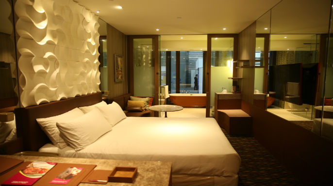 皇冠假日酒店大床房和獨(dú)立衛(wèi)浴模塊 樣板房