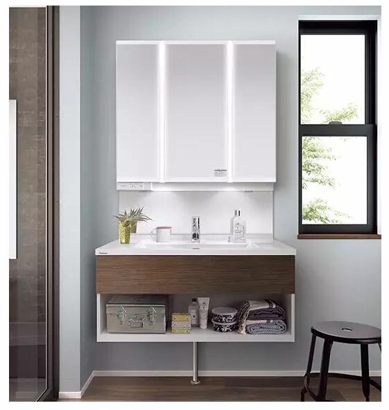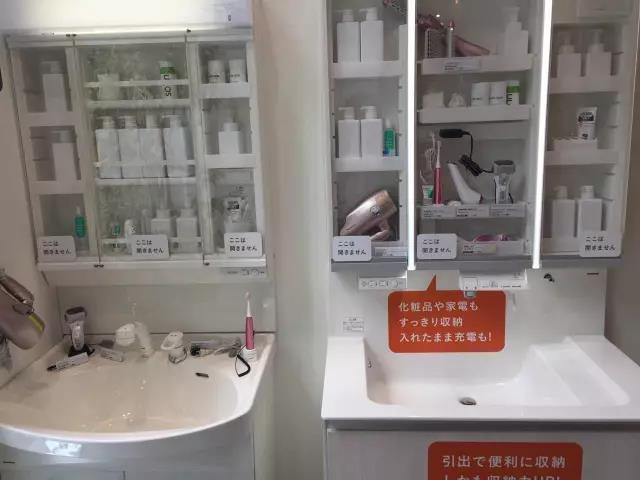 浴室柜除了收納功能,還裝配美容儀器充電插座,可以在不使用的時候及時充電。