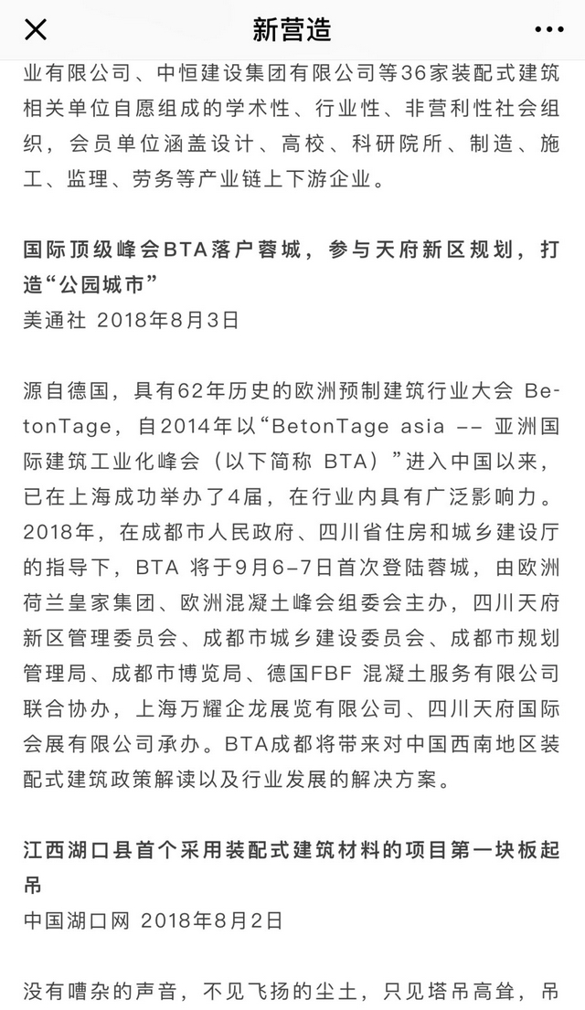 四川天府新城作為可持續(xù)發(fā)展的國(guó)際級(jí)新區(qū),受到了全國(guó)各界的關(guān)注。近日,為規(guī)劃好新區(qū),建設(shè)美麗宜居“公園城市”。四川天府新區(qū)管理委員會(huì)攜手亞洲國(guó)際建筑工業(yè)化展覽會(huì)(BIC),于2018年9月6-7日在四川在成都天府新區(qū)秦皇假日酒店隆重召開2018亞洲國(guó)際建筑工業(yè)化峰會(huì)(成都),簡(jiǎn)稱“BTA成都”。