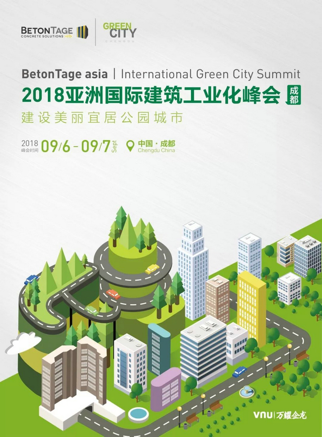 BetonTage系列論壇-“2018亞洲國際建筑工業化峰會(成都)(英:BetonTage asia · GREENCITY)”,將于2018年9月6-7日在成都天府新區秦皇假日酒店隆重召開。本次峰會由歐洲荷蘭皇家集團和歐洲混凝土峰會組委會主辦,四川天府新區管理委員會協辦。峰會將圍繞“建設美麗宜居公園城市”這一主題,結合四川天府新區發展方向,以國際綠色城市為出發點,聚集國內外專家深入探討從城市規劃、建筑設計到建筑工業化、數字城市與智慧建筑領域的發展和應用。