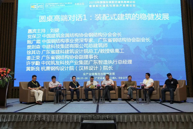 8月25日下午至26日,本屆展會主題論壇“2018第二屆中國國際裝配式建筑高峰論壇暨裝配式建筑與房地產發展論壇”在廣州威斯汀酒店舉辦,600多會議代表參加了論壇,現場座無虛席。住建部科技與產業化發展中心規劃發展處處長梁浩、中國工程院院士岳清瑞、清華大學建筑設計研究院副院長候建群、中建科技總建筑師樊則森、中國鋼結構事業資深專家鮑廣鑑、中國建筑金屬結構協會鋼結構分會會長黨保衛等40多名專家領導圍繞“裝配式建筑穩健發展及全產業鏈整合”的主題,探討行業如何破局,哪種結構體系將成為市場主導,揭示房地產商如何玩轉裝配式建筑,激辯如何整合產業鏈才能推動行業發展,探索建筑建材更加密切的融合發展之道。
