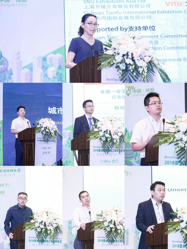 上午9點30分,論壇準時開始,出席的領導有四川省裝配式建筑產業協會會長蒙昌嘉先生、成都市城鄉建設委員會副巡視員補學東先生、成都市博覽局副局長毛艷女士以及成都市規劃管理局、四川天府新區成都管委會文創和會展局領導等。其中,四川省裝配式建筑產業協會會長蒙昌嘉、成都市城鄉建設委員會副巡視員補學東及歐洲混凝土峰會組委會大使Dominic Sturm為峰會致開幕辭,由此拉開了2018亞洲國際建筑工業化峰會(成都)的序幕。