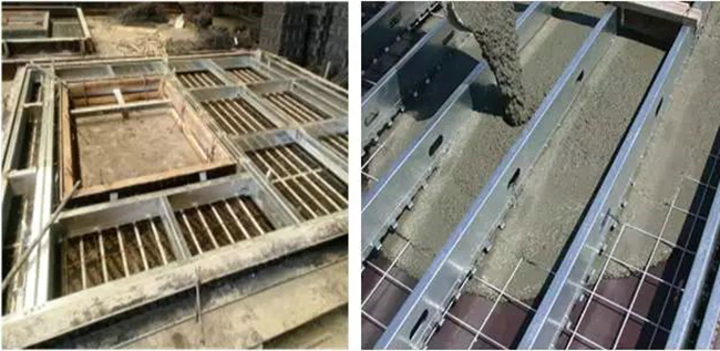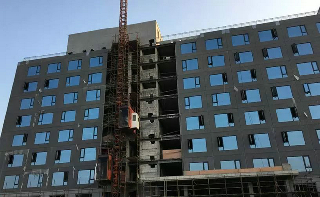 本項(xiàng)目樓板為現(xiàn)澆鋼筋混凝土,室內(nèi)隔墻采用加氣磚現(xiàn)場(chǎng)砌筑的方式,外墻采用裝配式輕鋼混凝土組合外墻板。
