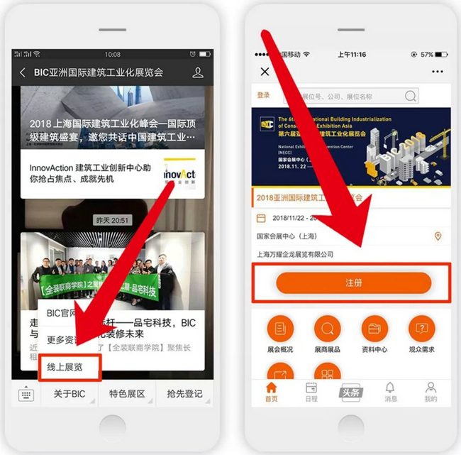 2、點擊“展覽信息-在線展會”,并用手機號“注冊”完善個人基礎信息