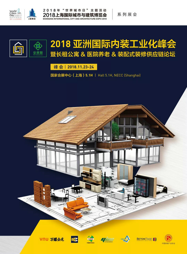 由上海萬耀企龍展覽有限公司及全聯房地產商會全裝修產業分會聯合主辦的2018 亞洲國際內裝工業化峰會將于2018年11月23-24日在國家會展中心(上海)5.1H館隆重舉辦。